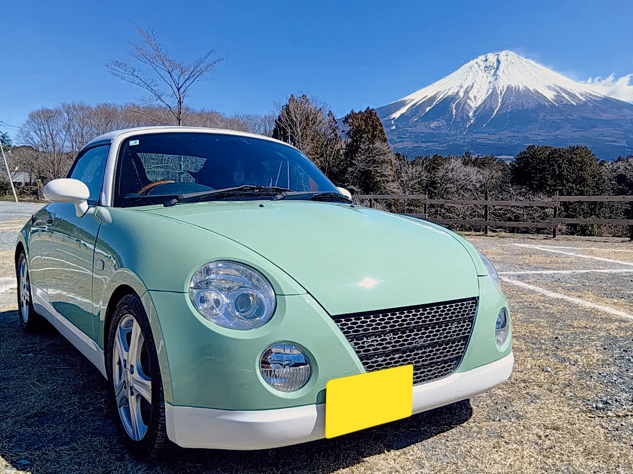 お引き渡し完了 L880Kコペン 全塗装/日産純正フィガロカラー 帰途途中の画像をいただきました! 2026年3月8日 By K_car_club 0 Comments L880K コペン, オリジナルペイント, 記念写真 先日、フィガロカラーで全塗装したコペンをご紹介しましたが、こちらのお客様は結構遠方からのご依頼でした。昨日、無事にお引渡しが完了したのですが、当店のある静岡県浜松市から距離にして約300kmくらいの場所から来られて、そのままとんぼ返りでお帰りなのですが、途中、富士山を背景に素晴らしい写真を送っていただきましたので、ご紹介! Tags: オールペイント, フィガロカラー, 全塗装